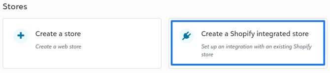 From your account, you will see the option to Create a Shopify integrated store. The "Create a store" tab to the left is the option you would select when opting to build a White-Label store vs connecting an existing Shopify store.