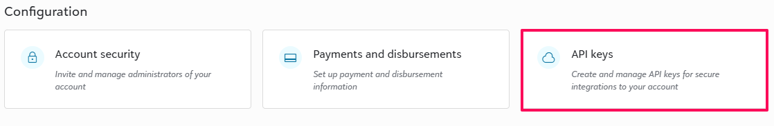 1. Within the FE Account, you will select the account ID and API Key. This is found on the Account under Configuration.