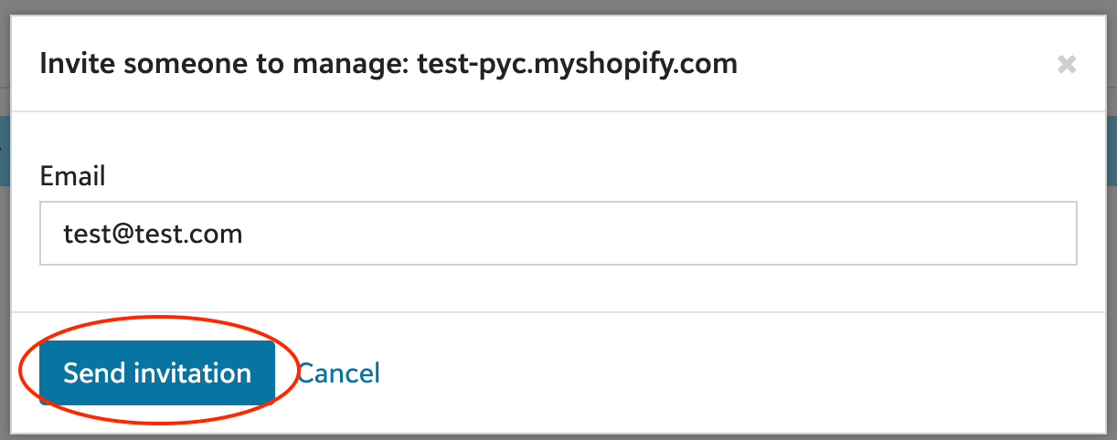 3. Add the user email then Send invitation. This will send an email to the requested user and give them access to the store.