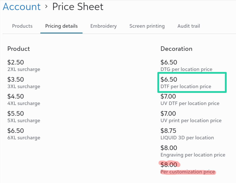 Starting January 30, 2026, Fulfill Engine will stop charging the Per customization price for each customization on a fulfilled store product. Instead, you will be charged the per location price for the applicable decoration method. Embroidery customizations will be priced by stitch count.