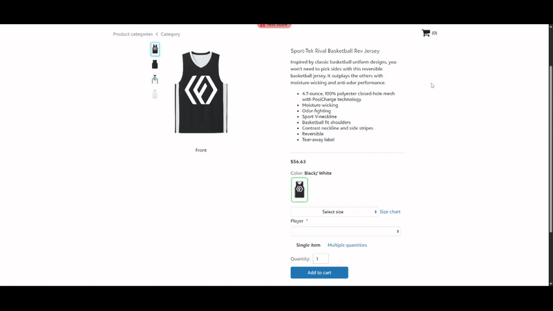 Choose from our growing selection of reversible catalog products that can be decorated on both the outside and inside. Pair with our roster customization features to instantly create two jerseys in one product.