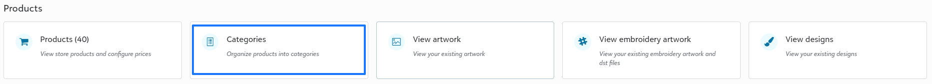 Here you are able to add Categories such as Unisex, Ladies, and Youth or T-Shirt, Hoodies, and Bags. There is no limit as to how many categories you may have!